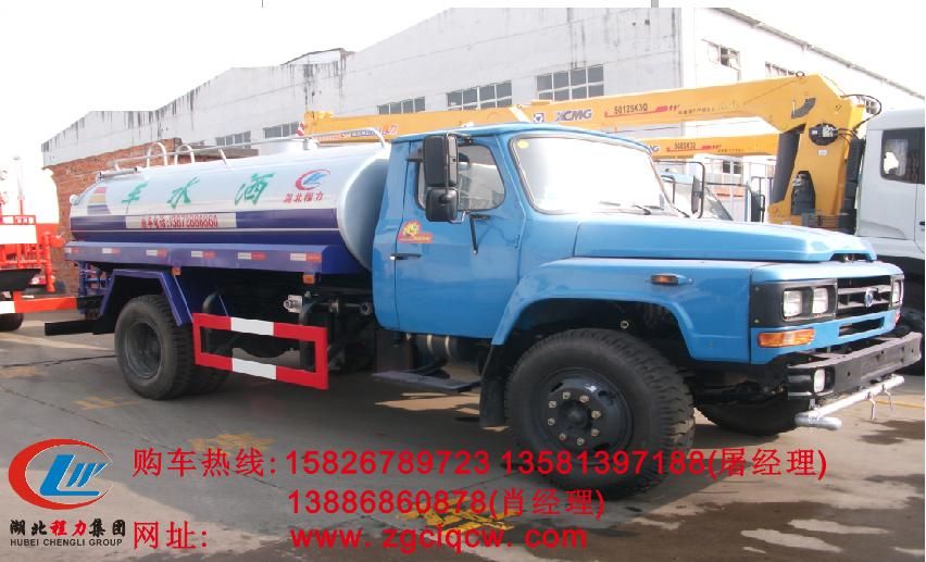東風平頭145、153運水車(罐體容積10000--15000L)東風康明斯170馬力、190柴油發(fā)動機和廣西玉柴160馬力、180馬力柴油發(fā)動機,9.00-20輪胎,帶方向助力,帶增壓、斷汽剎,5檔變速箱,3.6噸前橋,9噸后橋,整車外形尺寸:長×寬×高(mm)8350×2470×3050,總質(zhì)量(kg):16000,額定質(zhì)量(kg):,8000整備質(zhì)量(kg):7805,該車罐體有效容積:10噸-15噸,該車帶國家免征公告!