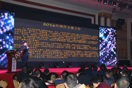 凱歌高奏,樂鼓喧天,燈光絢麗多彩,《2016年“程力專汽、享譽(yù)世界”之精彩回顧宣傳片》在震撼的視覺效果中,程力人的嶄新風(fēng)采全景式展現(xiàn)在人們眼前。會(huì)上,程力集團(tuán)總經(jīng)理程阿羅作了2016年年度工作報(bào)告,對2016年所取得的成績和存在的問題、短板作了深入的分析和評價(jià)。