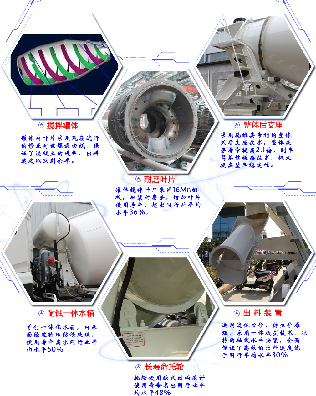| 其他 | 1,搅动容量为5.02立方米,2,防护栏所用材料材质Q235A,侧防护. 后防护均螺栓连接,断面尺寸:250(mm)×30(mm). 离地高度:500mm.3,该车加装具有卫星定位功能的行驶记录仪,选装驾驶室上车踏板.4,ABS系统生产厂家:西安正昌电子有限责任公司,广州市科密汽车制动技术开发有限公司,浙江万安科技股份有限公司.ABS系统对应型号:ZQFB-V,CM4XL-4S/4K,VIE ABS-Ⅱ.5,装配发动机与油耗值对应关系;WP10.310E53/37.16,WP10.290E53/37.06,WP10.336E53/36.94,WP10.336E55/36.84,WP7.300E55/36.77,ISM11E5 345/36.88;仅采用轮胎11.00-20,11.00R20,12.00R20 16PR,295/80R22.5;6,整车长度与轴距与前悬/后悬对应关系为:9600/3775+1400/1525/2900,9850/3975+1400/1525/2950,10400/4375+1400/1525/3100. | ||