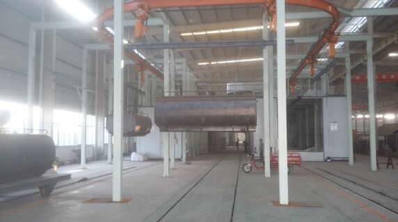 此流水線由自動拋丸機拋丸清理,循環(huán)水池,噴底漆室,底漆烘干室,膩子烘干打磨室,中涂流平面漆室,面漆烘干等流水線作業(yè)。
