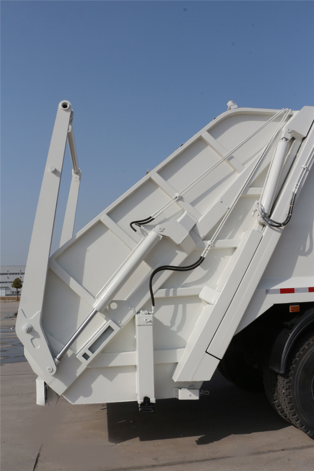 | 其他 | 1、該車選用軸距(mm): 4350+1350。2、該車有五種可選翻轉(zhuǎn)樣式,A:三角斗裝置,B:掛桶裝置,C:擺臂裝置,D:大落地斗裝置,E:無后翻轉(zhuǎn)裝置。當(dāng)選擇ABCD時(shí),該車前懸(mm)/整車長(mm)/后懸(mm)的對(duì)應(yīng)關(guān)系為:,1480/10480/3300,1500/10500/3300;當(dāng)選擇E時(shí),該車前懸(mm)/整車長(mm)/后懸(mm)的對(duì)應(yīng)關(guān)系為:1480/10280/3100,1500/10300/3100。3、防護(hù)材料:Q235碳鋼,連接方式:左右側(cè)面防護(hù)采用焊接連接在副梁上,后 | ||